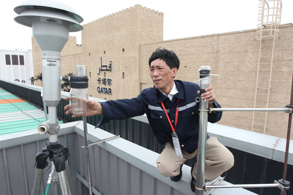 圖為環(huán)境監(jiān)測人員在檢測上海大氣污染物含量。中國環(huán)境報 記者鄧佳攝 |