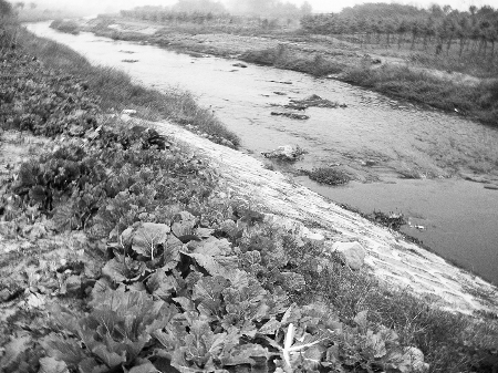當(dāng)天下午4時(shí),記者來(lái)到連霍高速公路與賈魯河相交處,向北就可看到,賈魯河兩岸村民種植的蔬菜有上海青、白菜、蘿卜等。