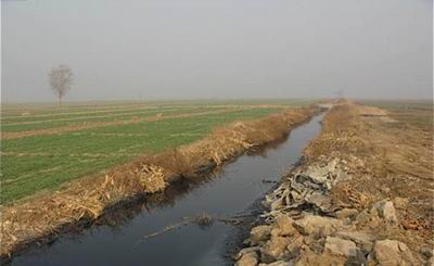 11月30日,記者來到了寧晉縣寧紡集團廠房后面,發(fā)現(xiàn)有兩排樓板,樓板下是兩條深溝,深溝大約寬3米,在深溝下流出冒著熱氣的黑水,黑水一直沿著明溝向東流去。在溝里,記者發(fā)現(xiàn)多處從廠區(qū)內伸出的管道,有的管道在向溝內排放著污水。記者徒步沿明溝行走了大約3公里,發(fā)現(xiàn)污水改道穿過寧晉縣孟村向南流去,穿過省道393,在寧晉縣育種場百畝良田中穿過,直至穿過國道308一直向南,污水流進汪洋溝。