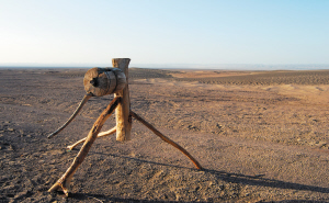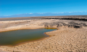 | 沙漠里曾經的取水設備,如今成了孤獨的“風景”。 | 正在干涸的池塘 |