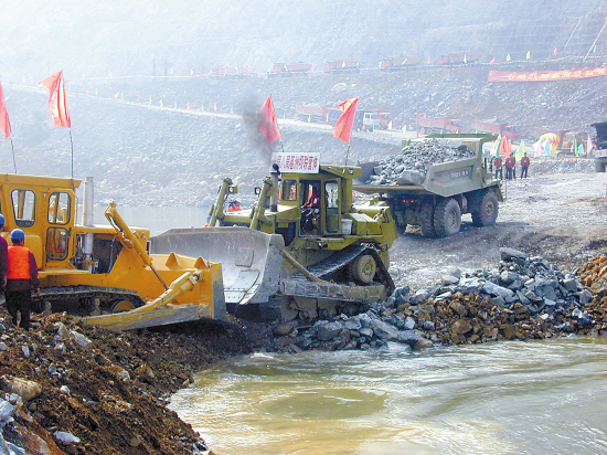 西江上游干流紅水河,僅次于長江三峽的特大型水電工程龍灘電站大江截流的情形 |