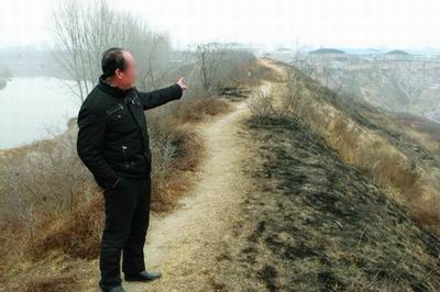 從窩頭寨向西約走七八百米,記者登上灃河大堤,大堤西邊就是灃河,東邊則是一個規(guī)模頗大塑料廠,這里的污染更是觸目驚心,廢棄的塑料堆滿了整個山坡,順著山坡兩個長長的排污管直抵坡底。由于長期排污,坡底下形成兩個巨大的污水坑。這個廠與灃河的直線距離只有百余米,而排污的水坑已接近水層。