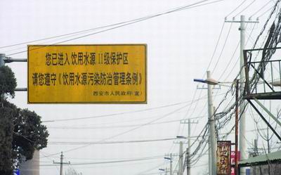 2月10日,記者驅(qū)車前往窩頭寨,在離村口1公里的道路上,迎面就看到“二級水源地保護區(qū)”的牌子,這是西安市政府批準設(shè)立的二級水源地保護區(qū),而入村的路上還有一塊路標牌直通水廠。