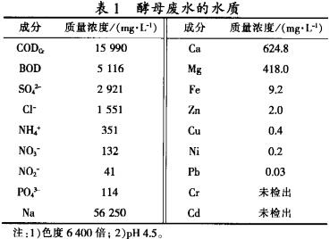 所用酵母廢水為廣東省某酵母生產(chǎn)廠生產(chǎn)車間的綜合排放廢水,由發(fā)酵罐廢水、洗滌過(guò)濾廢水以及地面沖洗水等混合形成,酵母廢水的水質(zhì)見(jiàn)表l。