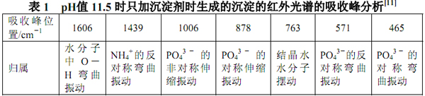 表 1 pH值 11.5時(shí)只加沉淀劑時(shí)生成的沉淀的紅外光譜的吸收峰分析