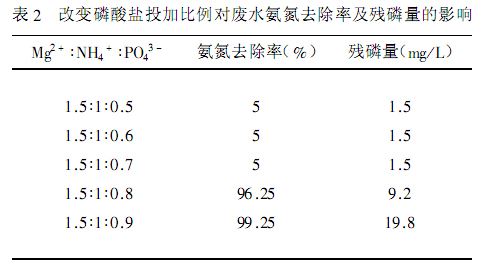 表 2 改變磷酸鹽投加比例對廢水氨氮去除率及殘磷量的影響