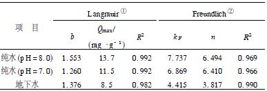 表1 Langmuir 與Freundlich 吸附方程的相關(guān)參數(shù)
