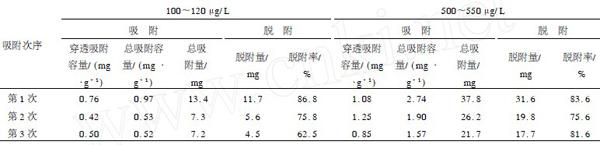 表2 不同砷初始濃度下砷穿透曲線吸附與脫附容量