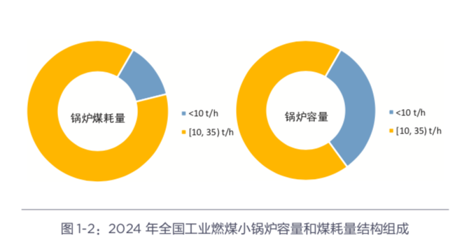 《報(bào)告》顯示,從重點(diǎn)領(lǐng)域成效來看,工業(yè)散煤削減力度尤為顯著。2024年全國(guó)工業(yè)燃煤小鍋爐總?cè)萘?7萬蒸噸,其中35蒸噸/小時(shí)以下小鍋爐容量?jī)H4萬蒸噸,占比8.5%,較2017年容量、煤耗量分別下降87%、82%。