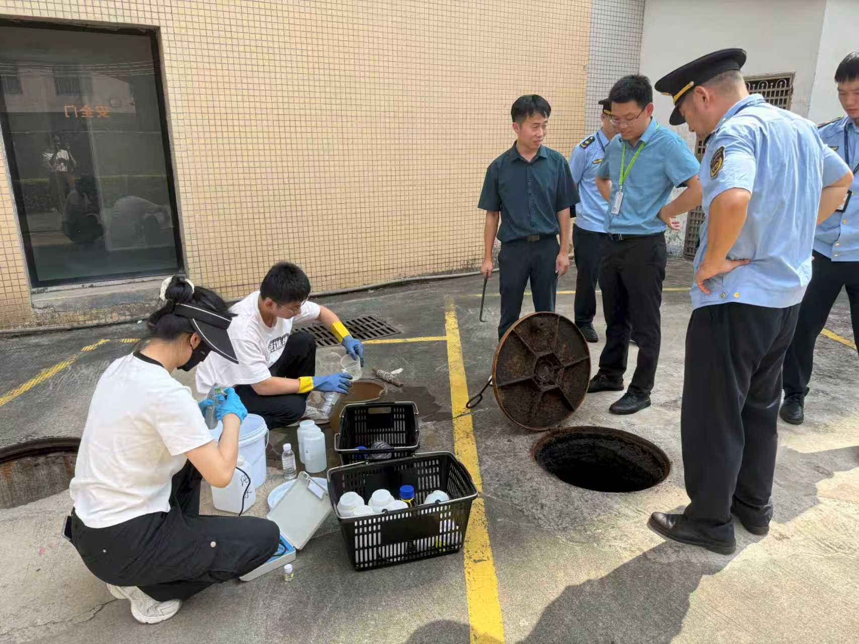 荔灣分局執(zhí)法人員組織開(kāi)展廢水監(jiān)測(cè)。