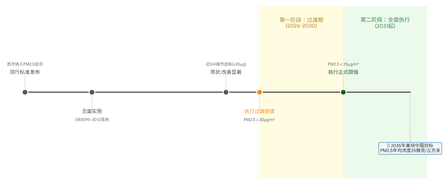 《征求意見稿》顯示,此次修訂擬將細(xì)顆粒物(PM2.5)年均濃度二級(jí)限值從現(xiàn)行的35微克/立方米收嚴(yán)至25微克/立方米,并提出分階段實(shí)施的路線圖,以確保標(biāo)準(zhǔn)平穩(wěn)落地。