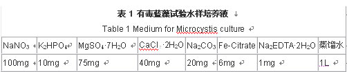 純種藍(lán)藻菌株Microcystis viridis 取自日本國(guó)立環(huán)境研究所生物保存棟,將此菌種接種于盛有250mL培養(yǎng)液(表1)的500mL三角燒瓶中,培養(yǎng)液事先在121℃條件下滅菌20min。