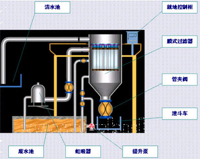 該系統(tǒng)流程中的主要關鍵設備有:膜式過濾器(包括濾元、濾袋)、管夾閥、控制裝置等。