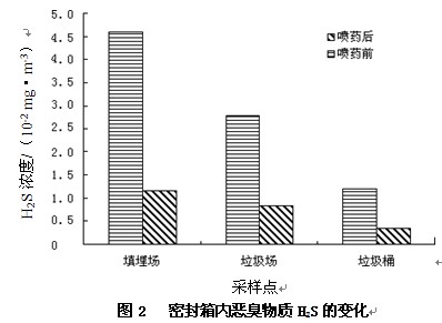 將萬潔芬噴霧于垃圾桶、垃圾場和垃圾填埋場后,去除H2S效果好。