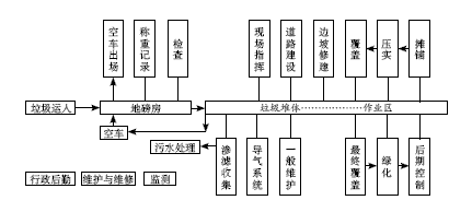 ![]() 圖1 垃圾衛(wèi)生填埋場工藝流程 |