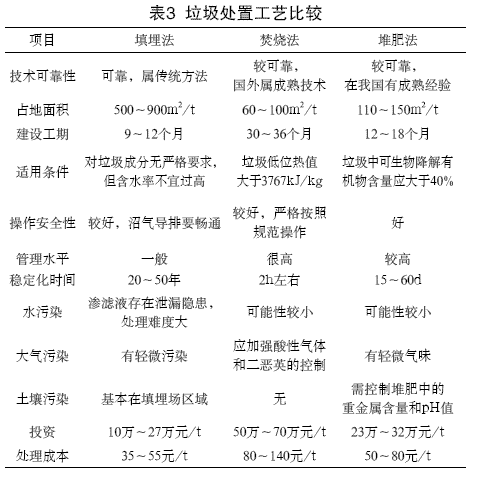 (3)針對大城市的情況,應(yīng)首先確定垃圾焚燒和堆肥規(guī)模,然后再考慮填埋規(guī)模,即填埋處置應(yīng)作為焚燒和堆肥的必要補充。