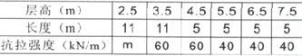 根據(jù)填埋作業(yè)工藝要求,擬在填埋庫區(qū)筑堤以增加填埋庫容,圍堤高度5.5m(黃海高程8.0m),靠庫區(qū)一側(cè)坡度1:2.靠外側(cè)坡度1:1。經(jīng)抗滑穩(wěn)定分析,若不采取加筋處理,不能滿足抗滑穩(wěn)定要求。為此,設(shè)計(jì)采用土工格柵加固圍堤,格柵參數(shù)如下表。