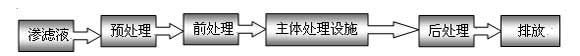 由于滲濾液組分復(fù)雜以及每種方法都有自身的適用范圍,單獨(dú)采用生化處理技術(shù)或物化處理技術(shù)的都不能滿足排放要求。因此,滲濾液的處理技術(shù)應(yīng)該是物化和生化等多種處理方法有機(jī)結(jié)合的工藝。