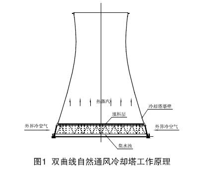 發(fā)電廠(chǎng)的大型冷卻塔一般都是自然通風(fēng)逆流式冷卻塔,這種冷卻塔的設(shè)計(jì)通常采用雙曲線(xiàn)型,塔體由鋼筋混凝土澆制而成,塔筒底部為進(jìn)風(fēng)口,用人字型柱、方柱或T型柱交叉支撐,是發(fā)電廠(chǎng)閉式循環(huán)冷卻水系統(tǒng)的關(guān)鍵設(shè)備之一。