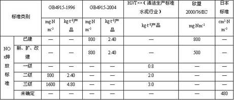 2   水泥工業(yè)NOx 的排放標準