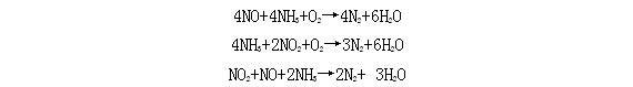 在分解爐的中下部(約950℃) 加入還原劑尿素[CO(NH2)2]或氨水(NH4OH) ,在有部分氧存在的條件下,發(fā)生以下反應過程。