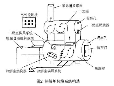 (1)在熱解室,醫(yī)療廢物通過缺氧、中溫燃燒(800℃~900℃),轉(zhuǎn)化為固體殘?jiān)蜔煔狻?/p>