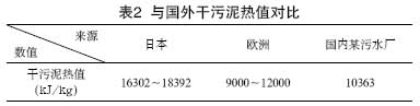 國內外的市政污泥在性質上沒有本質的區(qū)別,均為活性污泥法的產物,只是由于各地生活水平和飲食習慣的不同導致了污泥熱值的不同。國內外干污泥熱值的比較見表2。