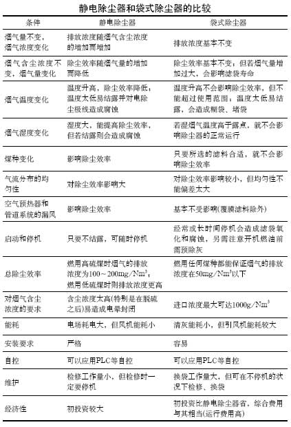 3.1 靜電除塵器和袋式除塵器的比較(見下表)