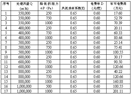表1  降低袋式除塵器運(yùn)行阻力經(jīng)濟(jì)效益概算表