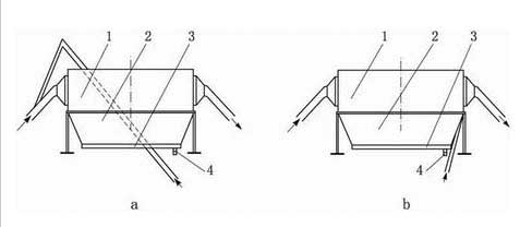 脈沖袋式除塵器的標(biāo)準(zhǔn)形式是在下灰斗處采用螺旋輸送機(jī)(見(jiàn)圖1a),鎖風(fēng)裝置采用分格輪下料器。這2種設(shè)備故障率較高,尤其螺旋輸送機(jī)的軸和葉片在灰斗內(nèi),其吊軸承的故障多,維護(hù)困難。