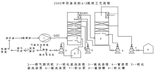 1.煤氣中H2S的脫除,采用本次改造的工藝即濕式氧化工藝。