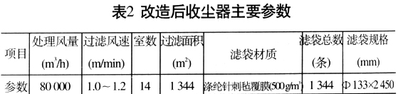 經(jīng)過以上措施,收塵器主要參數(shù)如表2。