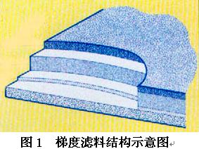 ⑴ 濾料截面結(jié)構(gòu)上采用纖維細度逐層加大的梯度層次結(jié)構(gòu),它由表層超細纖維層、細纖維層、基布、粗纖維層4層構(gòu)成。流體通道由傳統(tǒng)針刺氈的等寬繞形通道改變?yōu)樘菪危ㄇ罢髮挘├@形通道。