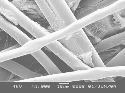 圖4纖維表面結(jié)構(gòu)PTFE膜電鏡觀測圖