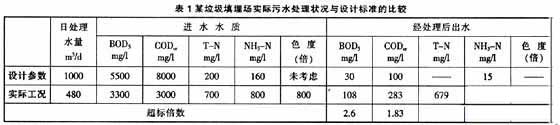 1.6 滲濾液中的微生物營養(yǎng)元素比例失調(diào),主要是C、N、P的比例失調(diào)。一般的垃圾滲濾液中的BOD5:P大都大于300。