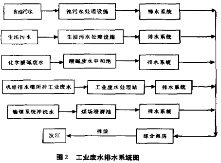襄樊電廠灰水系統(tǒng)見(jiàn)圖l,其它工業(yè)排水系統(tǒng)見(jiàn)圖2