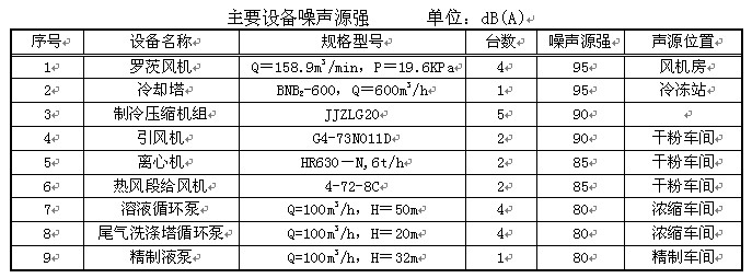 附表:冷卻塔及濃縮工序的羅茨風(fēng)機(jī)、干燥工序的引風(fēng)機(jī)、循環(huán)泵等噪聲源