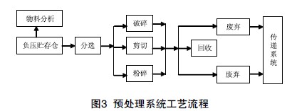 危險(xiǎn)廢物在焚燒前需進(jìn)行預(yù)處理。預(yù)處理系統(tǒng)工藝流程見(jiàn)圖3。