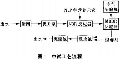 厭氧技術(shù)在國外造紙工業(yè)廢水處理中的應(yīng)用已非常成功,與發(fā)達國家主要采用木漿為造紙原料不同,我國造紙行業(yè)多采用草漿為原料,廢水處理方法主要包括物化法和傳統(tǒng)活性污泥法等,而較少采用厭氧技術(shù)。筆者采用中試規(guī)模的ABR/MBBR組合工藝處理草漿中段廢水,考察了處理效果,以期為該工藝的生產(chǎn)應(yīng)用提供依據(jù)。