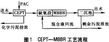 隨著環(huán)保標(biāo)準(zhǔn)的日益嚴(yán)格,脫氮除磷成為污水處理的必然發(fā)展趨勢(shì)。而我國(guó)現(xiàn)有的大部分城市污水處理廠的處理工藝對(duì)氮、磷等營(yíng)養(yǎng)元素的去除效果較差,因此對(duì)其進(jìn)行升級(jí)改造使之具有脫氮除磷功能已成為亟待解決的問(wèn)題。另外,我國(guó)廣大中小城鎮(zhèn)污水廠的普及率還較低,考慮到小城鎮(zhèn)的經(jīng)濟(jì)、技術(shù)水平等因素,開(kāi)發(fā)低成本、高效率、運(yùn)行管理簡(jiǎn)單的脫氮除磷工藝具有重要意義。針對(duì)上述問(wèn)題,課題組在多年研究的基礎(chǔ)上將化學(xué)強(qiáng)化一級(jí)處理(CEPT)和流動(dòng)床生物反應(yīng)器(MBBR)相結(jié)合構(gòu)成了CEPT-MBBR工藝,CEPT段可在較短的水力停留時(shí)間下去除大部分TP、懸浮物和部分有機(jī)物,后續(xù)MBBR的生物氧化處理則強(qiáng)化了系統(tǒng)對(duì)溶解性有機(jī)物和氨氮的去除效果,將化學(xué)除磷和生物脫氮相耦合可發(fā)揮兩種工藝的各自優(yōu)勢(shì),實(shí)現(xiàn)高效脫氮除磷。