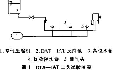 DAT-IAT工藝是由DAT(需氧池)和IAT(間歇曝氣池)串聯(lián)而成,DAT池連續(xù)進水、連續(xù)曝氣;IAT池連續(xù)進水、間歇曝氣、間歇沉淀間歇排水。兩池之間由配水系統(tǒng)相連接,上清液由安裝在IAT池末端的潷水器排出,回流污泥和剩余污泥由放在IAT池中的污泥泵來完成。IAT池的運行周期可根據(jù)需要設置,它與原水水質(zhì)、排放比等參數(shù)有關,對給定的廢水要通過試驗來確定。