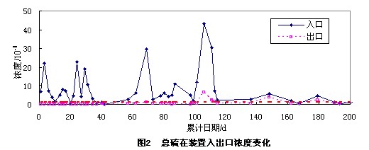 (1)對于九江總廠污水處理廠處的污染,由于烴類濃度較低(低于國家排放標準),從處理費用(包括一次性投資和運轉(zhuǎn)費用)與治理效果上考慮,可以以硫化物為處理對象進行工業(yè)放大。