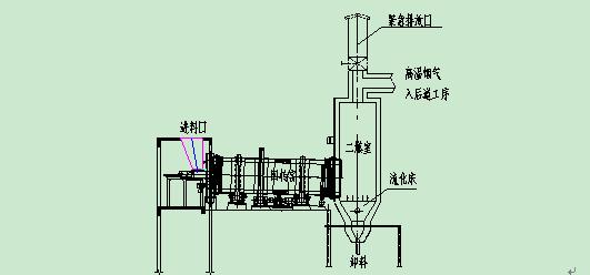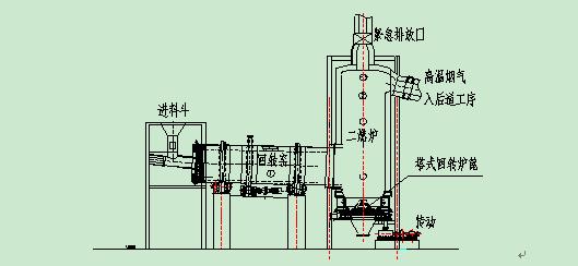 ②、要實(shí)現(xiàn)熱解法,熱工流程是在窯內(nèi)熱解部分的熱源依靠輻射,殘?jiān)急M采取富氧逆流;簡(jiǎn)而言之:熱工流程為“逆流+輻射”