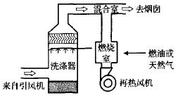 如圖所示,在直接燃燒煙氣再熱系統(tǒng)中,在出口煙道附近用含硫量低的燃油或天然氣在燃燒器中燃燒,然后熱煙氣直接進(jìn)入脫硫后的煙氣中混合。因?yàn)橹苯尤紵a(chǎn)生了比間接熱空氣溫度更高的熱煙氣,所以所需的再熱煙氣量更少,這將降低再熱風(fēng)機(jī)的容量并提高管路和煙囪處理的總煙氣量。這種再熱方法在日本的燃油機(jī)組中比較常見,煙氣一般可以被加熱到80~90℃。