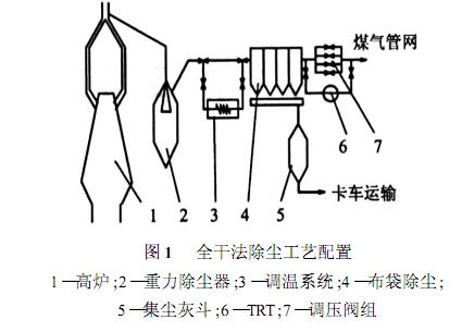 圖中干式煤氣布袋除塵技術(shù)主要工藝系統(tǒng)由以下幾部分組成。
