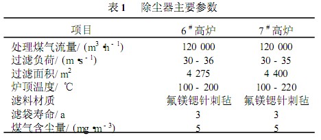 從表2可看出 ,該濾料的厚度、斷裂強(qiáng)度為高除塵效率提供了條件 ,并且在濾袋的檢漏方法上采用自動在線檢漏 ,可隨時監(jiān)控煤氣的質(zhì)量波動。