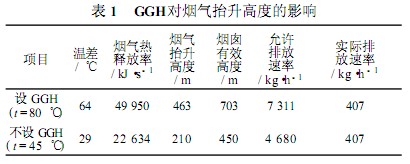 1. 2 GGH對煙氣抬升高度及 SO2 排放速率的影響