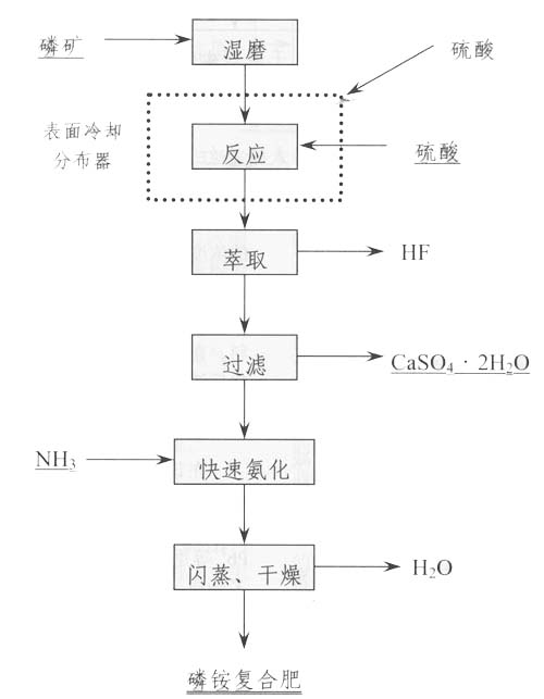 磷肥一直是硫酸消耗大戶,磷肥的制作工藝簡單,為磷礦(P2O530%)經(jīng)濕磨后與硫酸反應(yīng),生成磷酸,磷酸再和氨氣反應(yīng)生成磷酸一銨或二銨復(fù)合肥,其工藝流程如圖6所示。