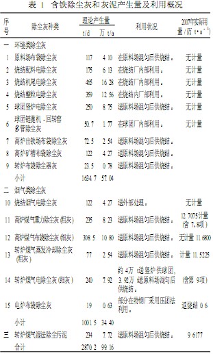 萊鋼是一個年產(chǎn)鋼過千萬噸的大型鋼鐵聯(lián)合企業(yè) ,經(jīng)過 37年的建設(shè)和發(fā)展 ,其生產(chǎn)設(shè)施已擁有 3個綜合原料場、6臺 105~265 m2燒結(jié)機、2座 8 m2球團豎爐、3臺 60萬 t鏈蓖機回轉(zhuǎn)窯、8座 750~1880 m3高爐、9座 40~120 t轉(zhuǎn)爐和 1座 50 t電爐及精煉爐。萊鋼生產(chǎn)所產(chǎn)生的含鐵除塵灰和灰泥 (下稱除塵灰、泥 )主要集中在燒結(jié)、煉鐵和煉鋼三個工序 ,除老區(qū) 4座 40~50 t轉(zhuǎn)爐仍沿用著濕法除塵外 ,其它全部采用干法除塵 ,主要除塵設(shè)備有重力除塵器、 電除塵器和布袋除塵器。萊鋼一直重視節(jié)能減排和循環(huán)經(jīng)濟工作 ,對除塵灰、泥的利用方式不斷改進 , 2007年累計利用除塵灰、 泥等廢棄物 20余種 44萬 t,取得了顯著的經(jīng)濟和社會效益。但是 ,大量利用除塵灰、 泥所存在的問題正日益受到重視 ,并在積極采用新的處理技術(shù)。