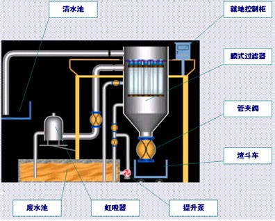 該系統(tǒng)流程中的主要關(guān)鍵設(shè)備有:膜式過濾器(包括濾元、濾袋)、管夾閥、控制裝置等。